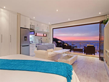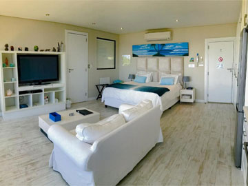 Seaview suite is the ultimate in luxury. It is a large 1 bedroom suite (measuring approx. 56 square metres) with its own entrance, and spans out onto a balcony with sea and mountain views and a swimming pool and garden below.